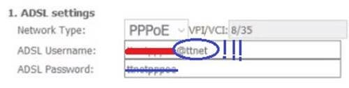 4 – Bu pencerede “ADSL Username” ve “ADSL Password” bölümünde servis sağlayıcı (örneğin TTNET) tarafından verilen kullanıcı adı ve şifredir. Bunlar ilk giriştekilerle farklıdır. Yalnız şuna dikkat edin. Buradaki kullanıcı adı sonunda “@servis sağlayıcı” (örneğin @ttnet) olmak zorunda.