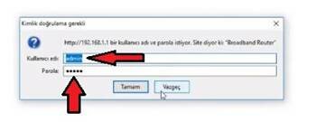 2 – Sonrasında karşınıza çıkan küçük pencerede kullanıcı adı ve şifreyi girin. Bu bilgiler size verilen kullanma klavuzunda vardır.